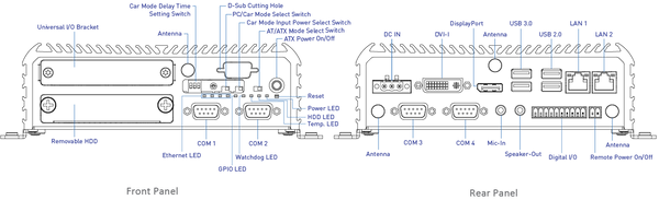 | Others | 4x WiFi Antenna Holes 1x Power Switch (front), 1x AT/ATX Switch (front) PC/Vehicle Mode, Vehice Voltage, Delay Off Time (front) 1x Remote Power On/Off (rear) |