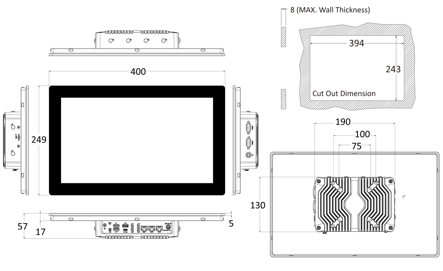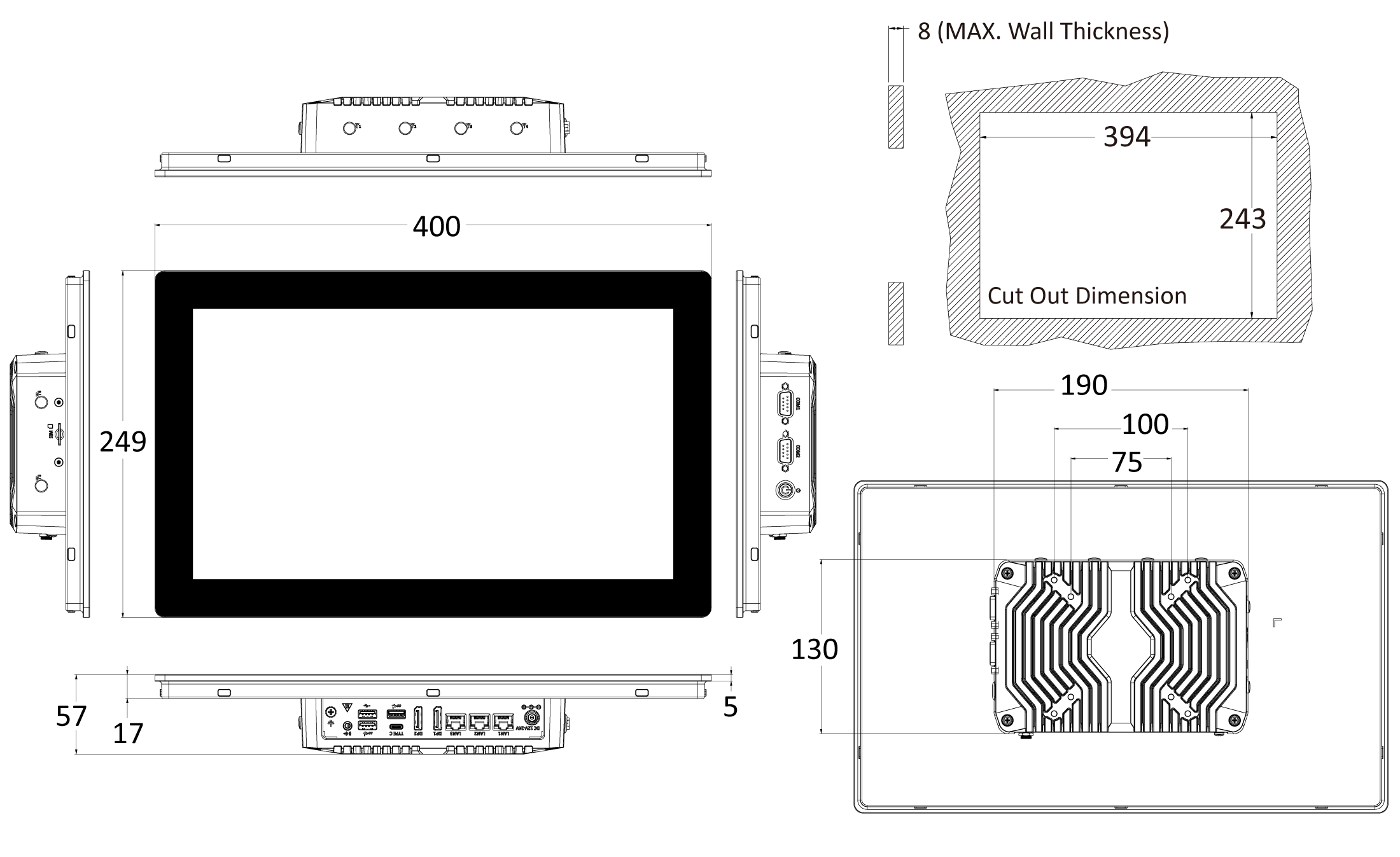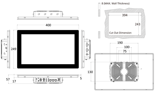 | Mounting | VESA Mount (75mm x 75mm/100mm x 100mm) Panel Mount (optional) |