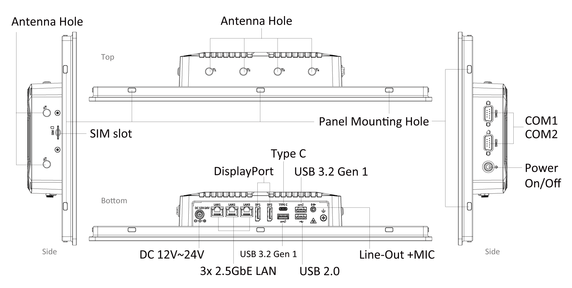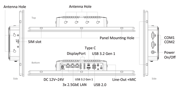AIO-W210-MTL 10.1" WXGA Capacitive IP65 All In One Touchscreen Computer with Intel® Core™ Ultra Series 1 Processors, 3x LAN, 3x USB, 1x Type C, 2x COM, 2x DP