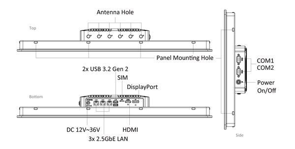 AIO-W210-ASL-3L 10.1" WXGA Capacitive IP65 All In One Touchscreen Computer with Intel® N97 / Atom® x7835RE Processor, 3x LAN, 2x USB, 2x COM, 1x DP, 1x HDMI