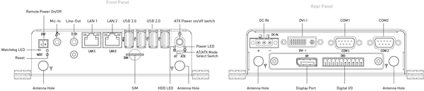 - 9 to 30VDC wide range power input supporting AT/ATX mode