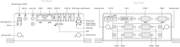 - 9 to 30VDC wide range power input supporting AT/ATX mode