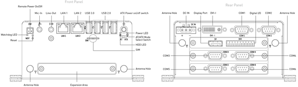 1x SIM socket - 6x RS-232/422/485, 1x USB 3.0, 3x USB 2.0