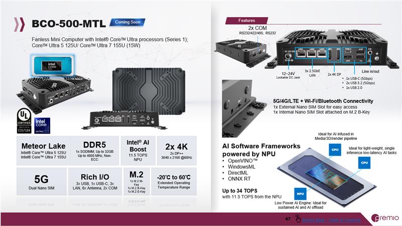 - Supports Intel® Core™ Ultra Processors, Meteor Lake-U, TDP 15W