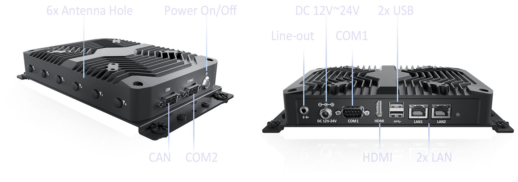 - 2x RS-232/422/485, 2x USB 3.0 Type A, 2x LAN