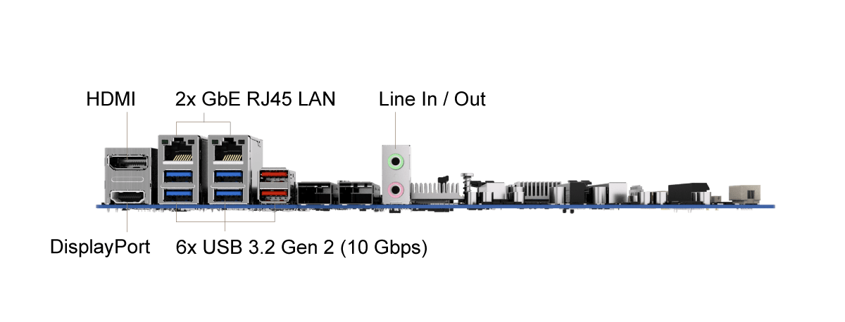 | USB | 6x USB 3.2 Gen 2 x1 (10Gbps) |