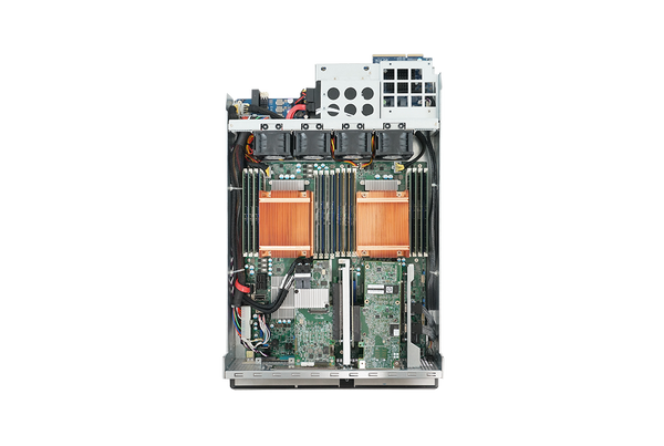 - Support two hot-swap MB modules each with Xeon DP server boards in one system as unified redundant controllers