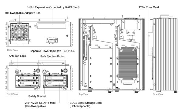 | Storage | 2x NVMe EDGEBoost Brick include: • 4x Hot-Swappable 2.5" NVMe SSD (15mm, U.2) |