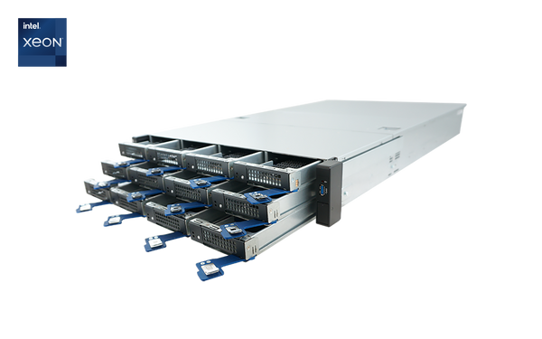 - 2U Server with 12 Unique Hot-Swappable Carrier Trays