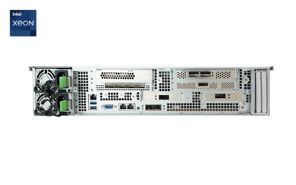 FlacheSAN2N108M-D5 2U with 108x hot-swappable Intel® EDSFF (E1.L) NVMe SSD bays