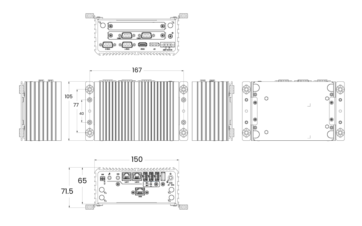 | Mounting Options | Wall Mounting SIDE / VESA / DIN-Rail Mounting (Optional) |