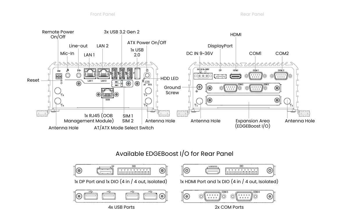 | EDGEBoost I/O Bracket | 2x EDGEBoost I/O Bracket (By mini PCIe interface, Proprietary Module) |