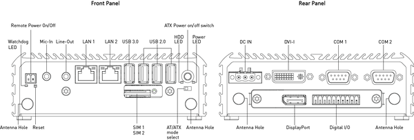 - 2x COM, 1x USB 3.0, 3x USB 2.0, 2x GbE