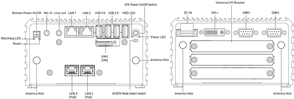 - 2x RS-232/422/485, 1x USB 3.0, 3x USB 2.0