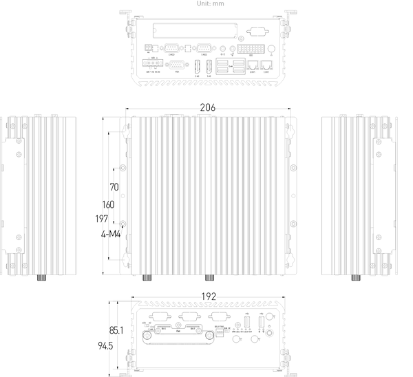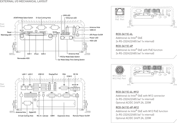 2x SIM socket - 5x RS-232/422/485 (w/ 3x internal), 4x USB 3.0, 2x USB 2.0