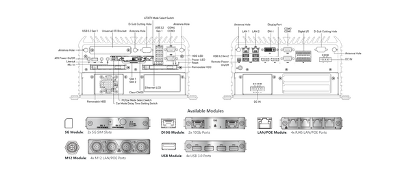 | Universal I/O Bracket | 3x Universal I/O Bracket (By mini PCIe interface) |