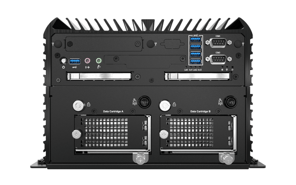 The RCO-6000-CFL-8NS AI Edge Inference Computer enables NVMe storage in a unique cannister brick design. These hot-swappable NVMe cannister bricks streamline and assist with data offload directly from the computer into a centralized location. The ability to quickly swap cannisters bricks provides easy data management and enterprise redundancy for applications that use data for machine learning and inference analysis.