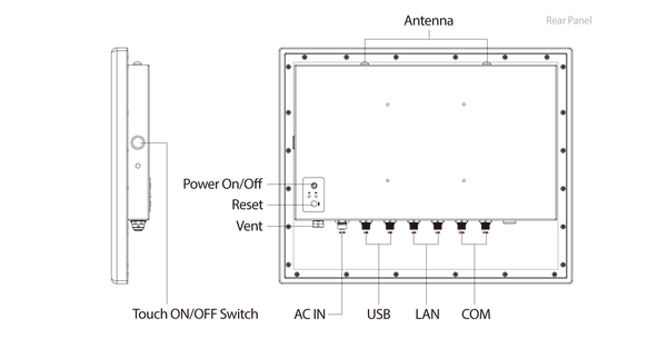 | Others | 2x WiFi Antenna (Optional) Power On/Off, Reset IP68/IP69K SUS 316 Vent |
