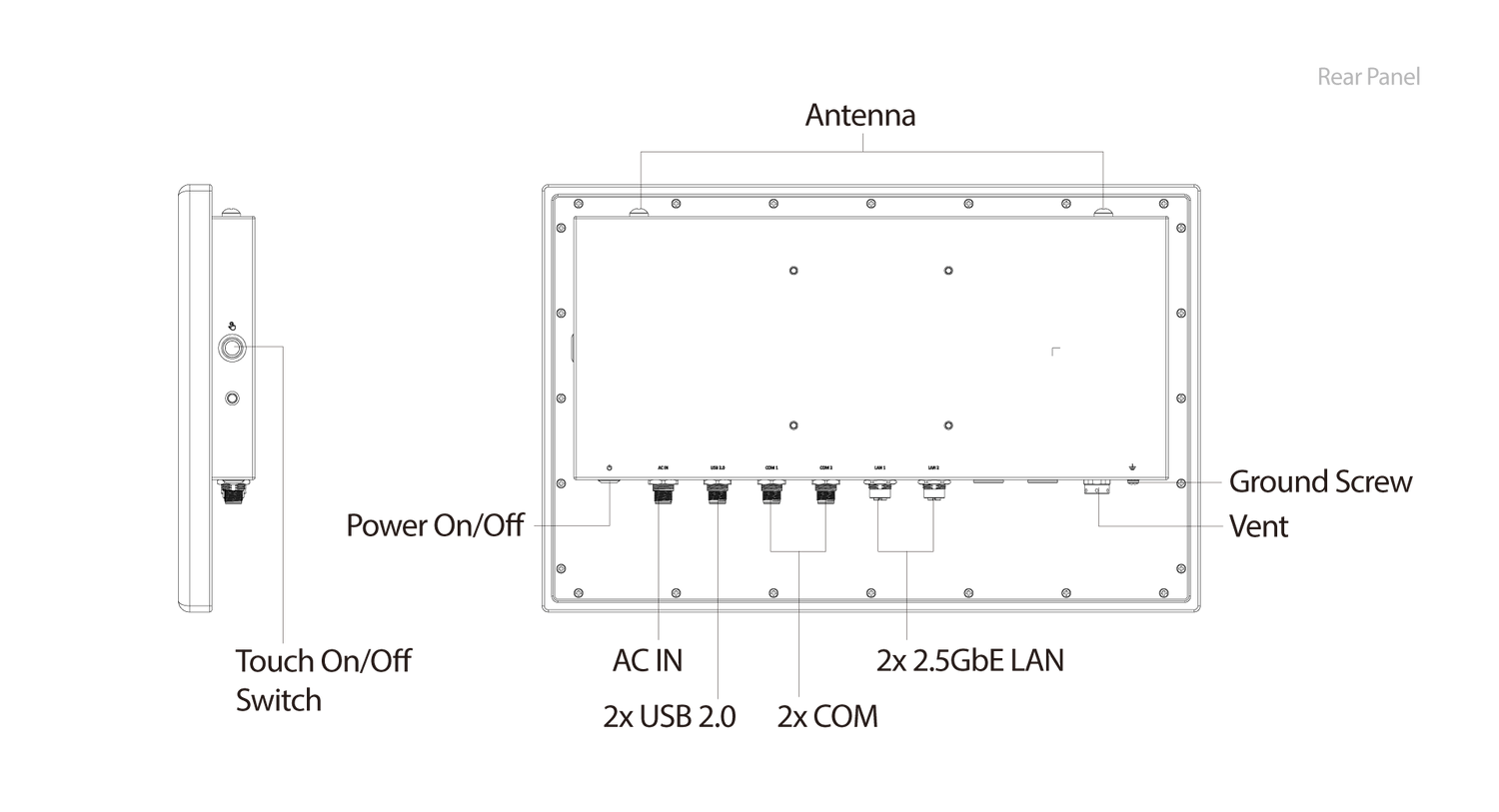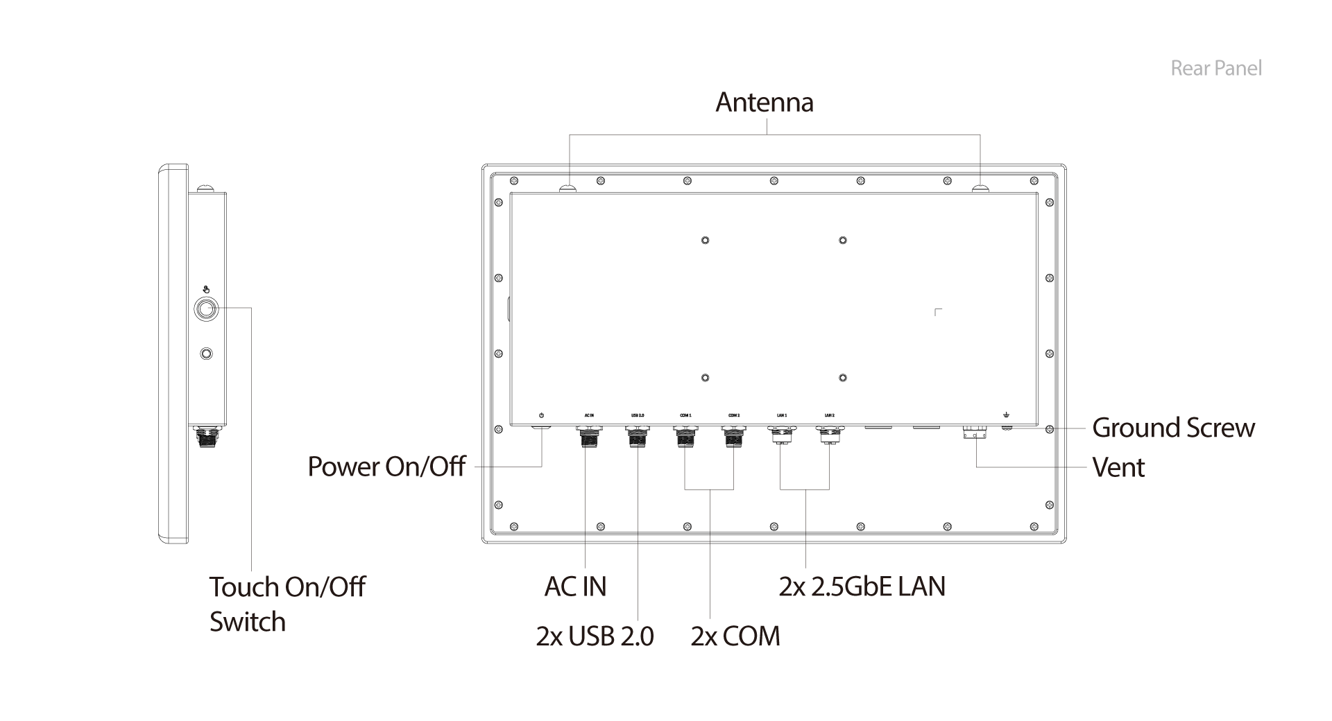 | Projected Capacitive Touch | Surface Hardness: 7H / IK07 Multi-touch: Default 2 point (Support Glove Mode) Anti-noise: CS 10V rms |