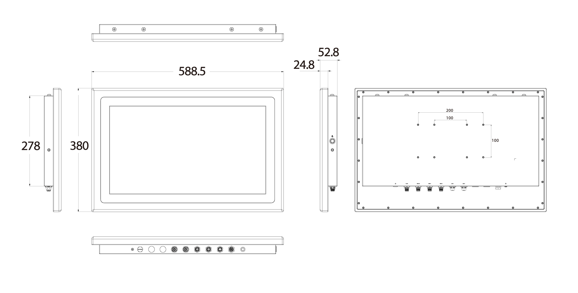 | Mounting Options | VESA Mounting Holes 100 x 100 mm or 200 x 100 mm Optional Yoke Mount |