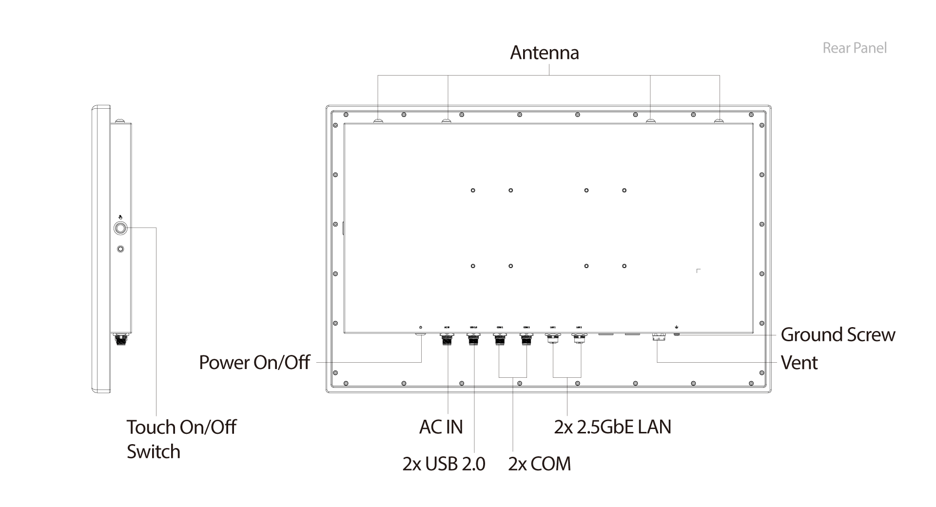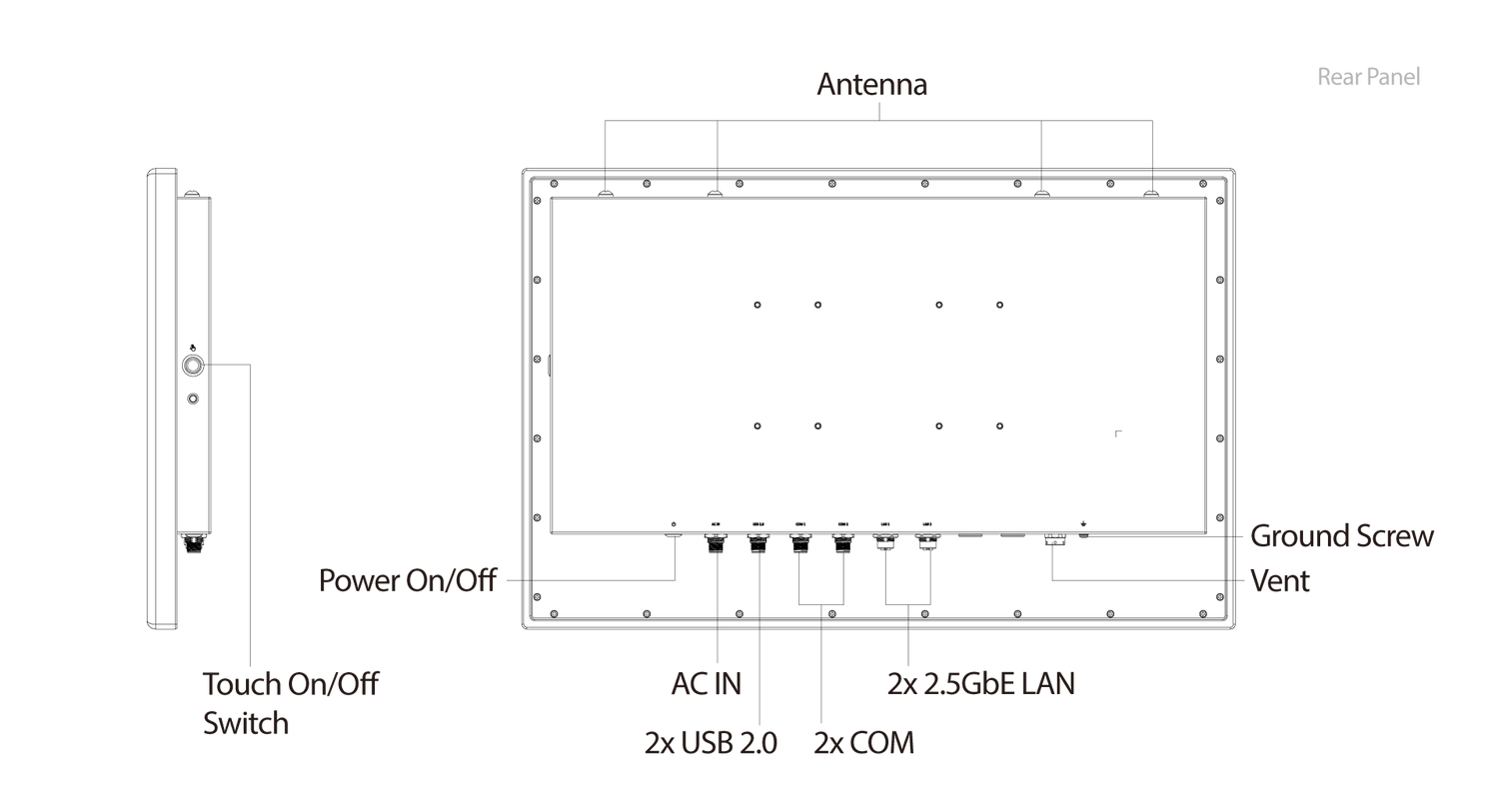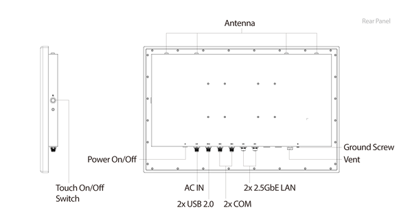 | Projected Capacitive Touch | Surface Hardness: 7H / IK07 Multi-touch: Default 2 point (Support Glove Mode) Anti-noise: CS 10V rms |