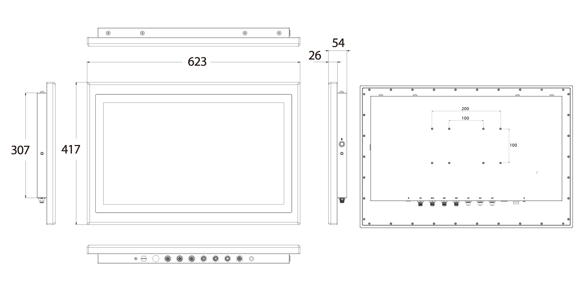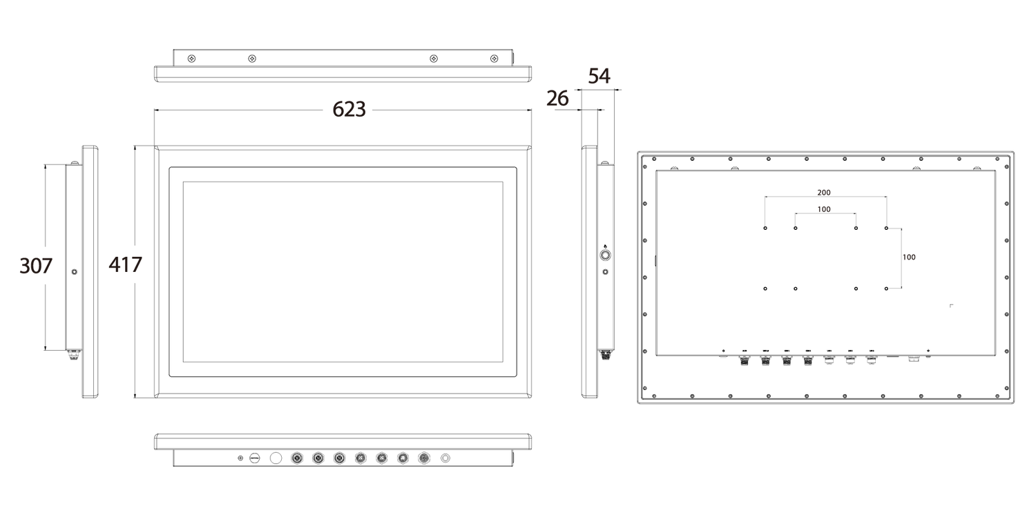 | Mounting Options | VESA Mounting Holes 100 x 100 mm or 200 x 100 mm Optional Yoke Mount |