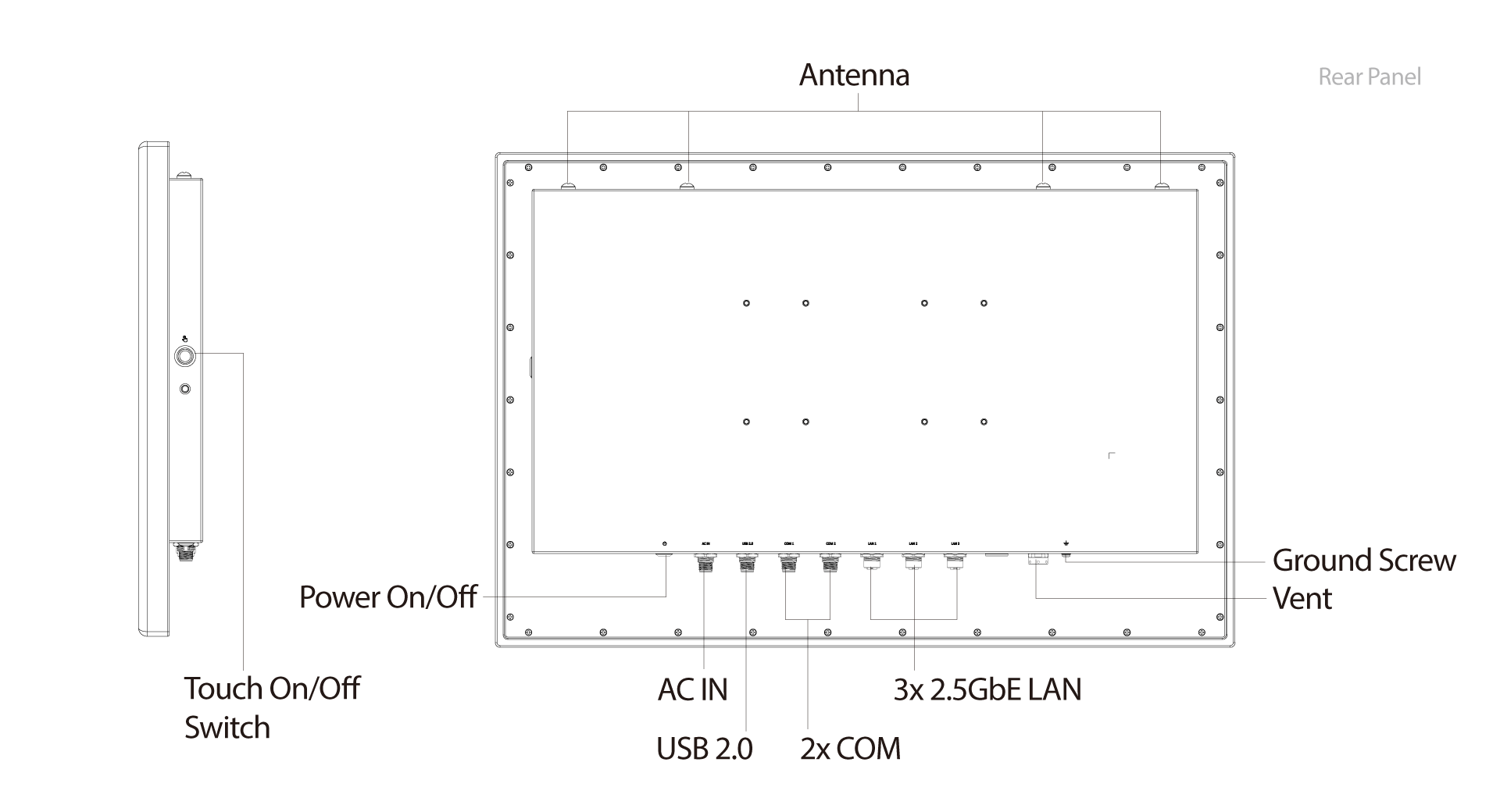 | Others | 4x Antenna (Optional) Power On/Off SUS 316 Vent |