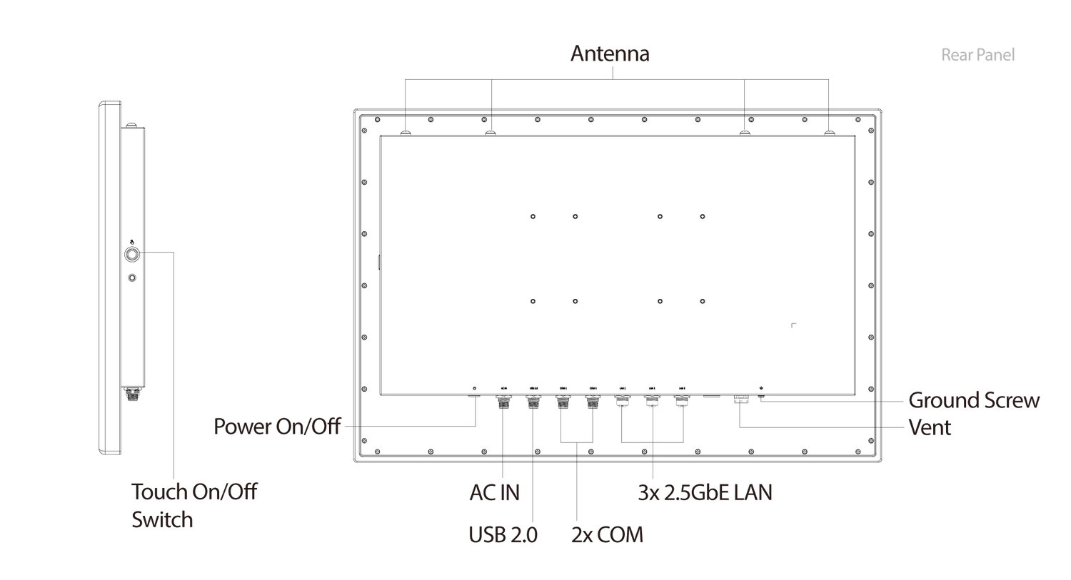 | Projected Capacitive Touch | Surface Hardness: 7H / IK07 Multi-touch: Default 2 point (Support Glove Mode) Anti-noise: CS 10V rms |