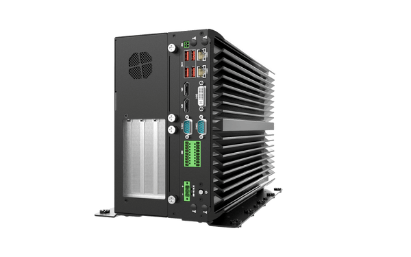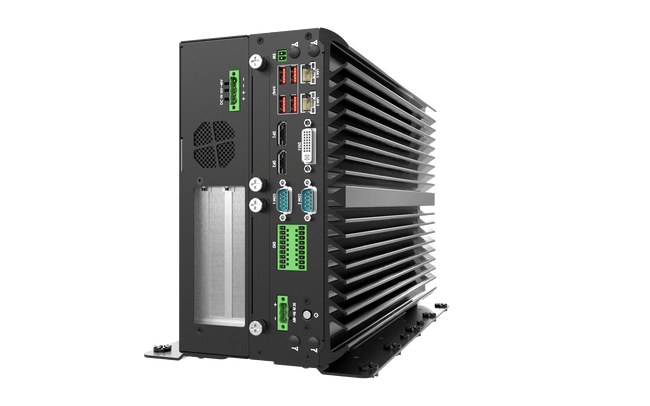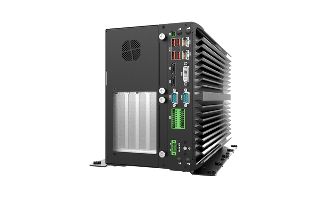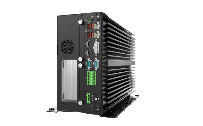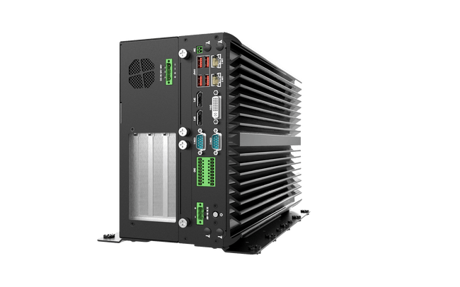 The front sided PCIe expansion slots for the vision computer can be populated with GPU performance accelerators in a Full-Length, Full Height form factor. GPUs allow intelligent devices to run machine learning algorithms for inference analysis of data from a variety of IoT sensors.