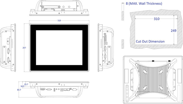 | Dimension | VIO-212-PC100-J1900: 319 (W) x 257 (D) x 61.7 (H) mm VIO-212-PC110-J1900-1: 319 (W) x 257 (D) x 83.7 (H) mm |