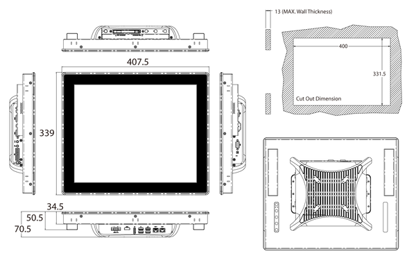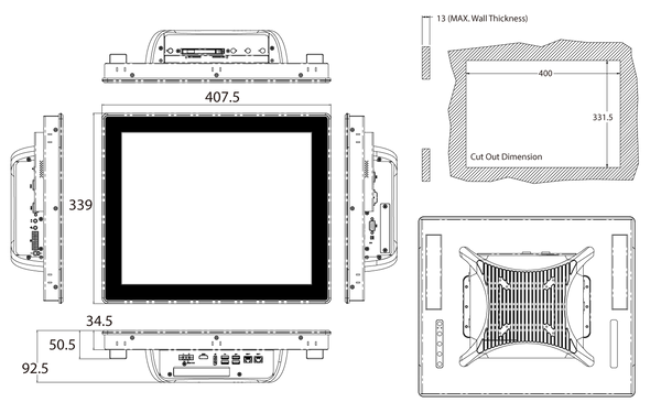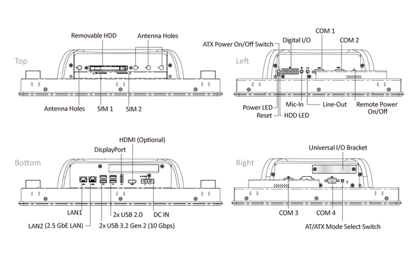 - IP65 compliant front panel / Fanless Industrial Display Computer