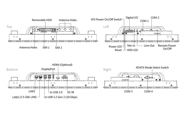 | COM | 4x RS-232/422/485 2x RS-232/422/485 (internal) |