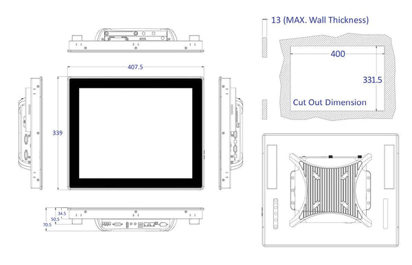 | Dimension | VIO-217-PC100-J1900: 407.5 (W) x 339 (D) x 70.5 (H) mm VIO-217-PC110-J1900-1: 407.5 (W) x 339 (D) x 92.5 (H) mm |
