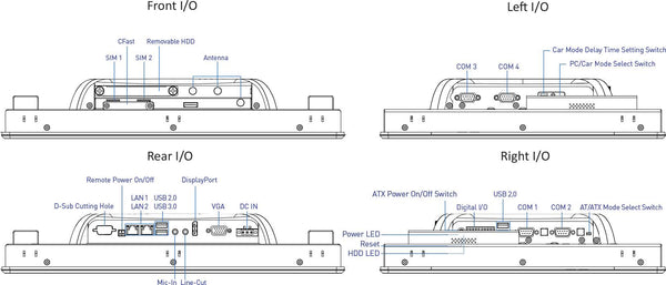 - 1x 2.5" SATA HDD bay, 1x mSATA, 1x CFast, 2x SIM socket