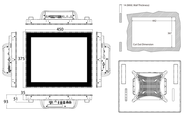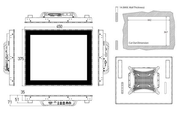 - IP65 compliant front panel / Fanless Industrial Display Computer