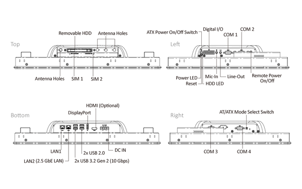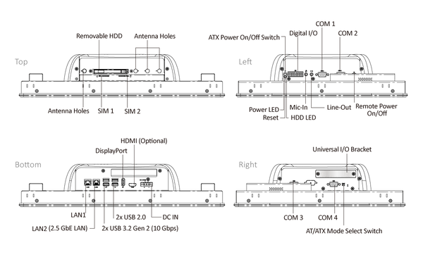 | COM | 4x RS-232/422/485 2x RS-232/422/485 (internal) |