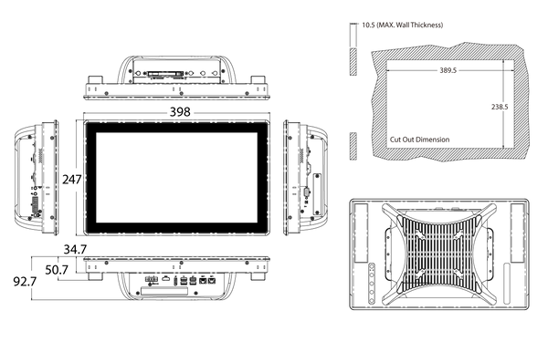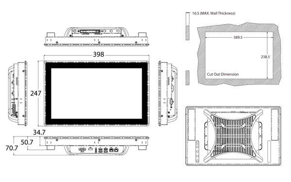 - IP65 compliant front panel / Fanless Industrial Display Computer