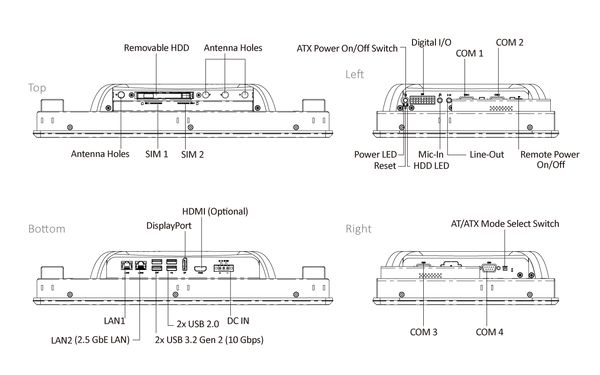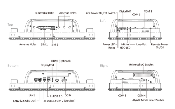 | COM | 4x RS-232/422/485 2x RS-232/422/485 (internal) |