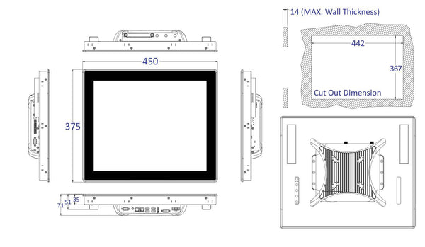 VIO-219-PC100-J1900 19" 4:3 IP65 Industrial Touchscreen Computer with Intel® Celeron® J1900