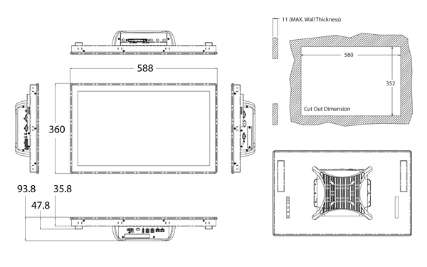 | Dimension | VIO-W224-PC100-EHL: 588 (W) x 360 (D) x 71.8 (H) mm VIO-W224-PC100-EHL-1E: 588 (W) x 360 (D) x 93.8 (H) mm |