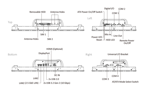 - IP65 compliant front panel / Fanless Industrial Display Computer