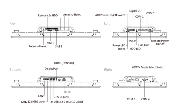 | COM | 4x RS-232/422/485 2x RS-232/422/485 (internal) |