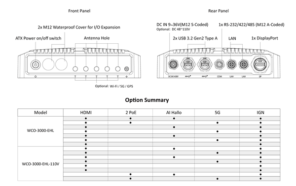 WCO-3000-EHL Advanced IP68/69K Waterproof Computer with Intel Atom® X6425E CPU, 1x DP, 2x LAN, 2x USB 3.2 Gen 2